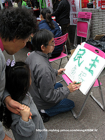團體擺小攤提供 "普選缽仔糕", "反功能組別咸肉粽".