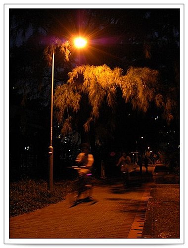 昏黃街燈, 飛馳單車, 奔向黑夜.