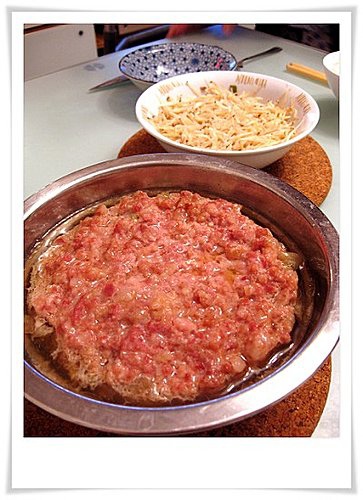 把生抽、糖、鷹栗粉加入豬肉,攪均,正準備混進茄子一刻,停一停,想一想,真的要水乳交融嗎?