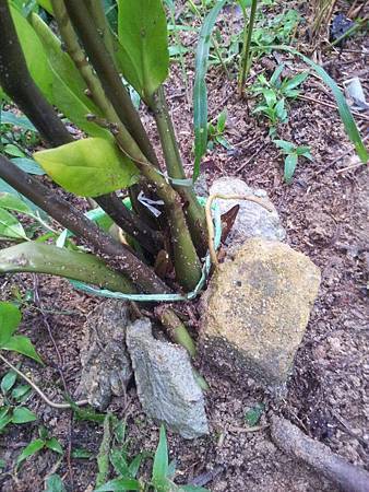 挖深一點點, 扶正, 以石頭保護, 希望根快長, 抓住泥.