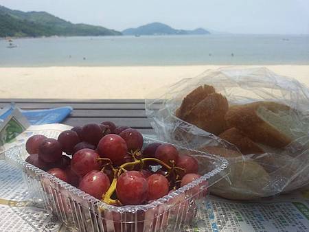 在銀礦灣沙灘, 享受葡萄, 法包, 陽光.
