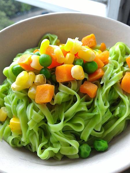 麵條裡偶有菠菜碎碎, 好手工 feel.