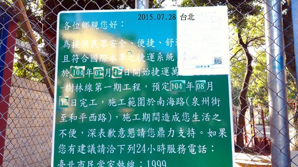 過了台北植物園, 竟有捷運工地, 台北捷運已相當方便, 還在建呢~