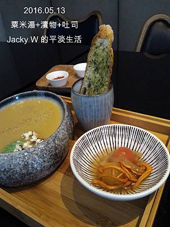 粟米湯裡浮了幾顆爆米花, 沒罐頭湯機械甜, 香料味濃.