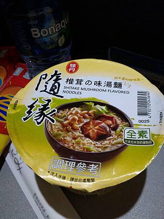 訂機票有訂西式素食,空姐派餐前卻沒來確認,隱隱有事,果然沒訂成功!朋友分我幾塊餅乾後,眼大大空姐來問杯麵可以嗎?其實不餓,但沒試過機上杯麵嘛,就要了。味度呢... 就調味料囉~