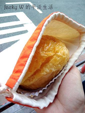我買這個小的,放兩個菠蘿包剛剛好,Mimi稱之為"返工返學size",售$80。有大的,較適合洋人麵包。另有法包size,長條型,銷量不怎樣,應該沒什麼人喜歡揹劍般揹著法包吧~